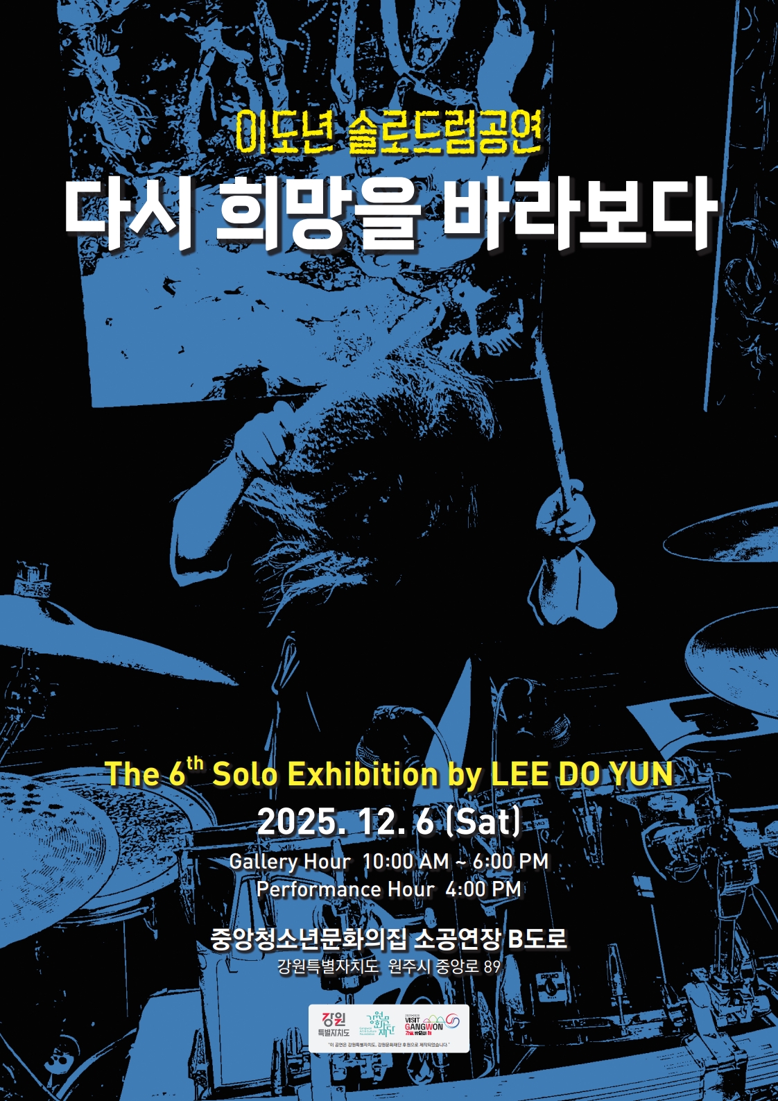 이도년(동물자원49) 동문이 12월 6일(토)에 원주시 중앙청소년문화의집 소공연장에서 솔로드럼공연 '다시 희망을 바라보다'를 개최한다.