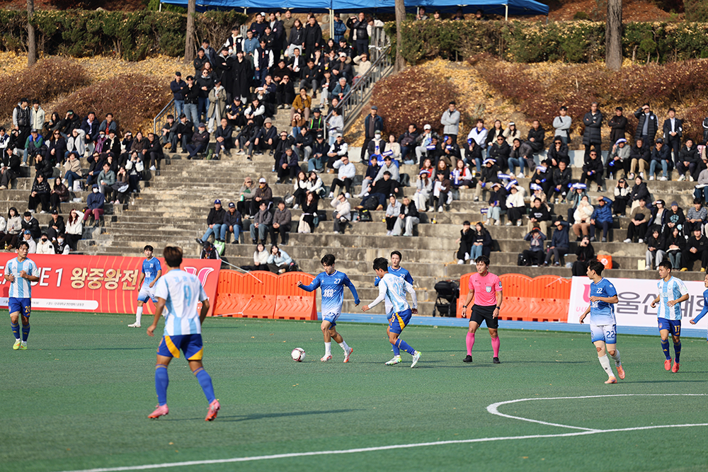 우리 대학 축구부(감독 박종관)가 11월 20일(목) 오후 2시 천안캠퍼스 대운동장에서 열린 ‘2025 KUSF 대학축구 U-리그 왕중왕전’ 결승전에서 울산대학교를 3:2로 제압하며 U리그 1부 우승을 차지했다.